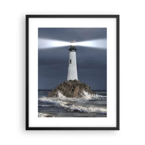 Impression sur toile - Image sur toile - Un phare sur un rocher entouré d'une mer agitée - 100x70cm - I… i… ici ! - Décoration murale moderne pour le salon et la chambre ARTTOR