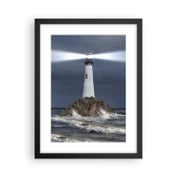 Impression sur toile - Image sur toile - Un phare sur un rocher entouré d'une mer agitée - 120x80cm - I… i… ici ! - Décoration murale moderne pour le salon et la chambre ARTTOR