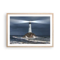 Impression sur toile - Image sur toile - Un phare sur un rocher entouré d'une mer agitée - 70x100cm - I… i… ici ! - Décoration murale moderne pour le salon et la chambre ARTTOR