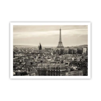 Affiche - Poster - Panorama de Paris avec la Tour Eiffel en tons sépia - 100x70cm - Sur les toits de Paris - Décoration murale moderne pour le salon et la chambre ARTTOR
