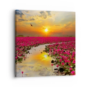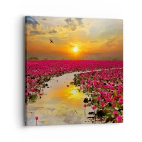 Impression sur toile - Image sur toile - Un champ de nénuphars roses au coucher du soleil - 50x70cm - La vie secrète du lac - Décoration murale moderne pour le salon et la chambre ARTTOR