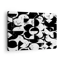 Impression sur toile - Image sur toile - Motif géométrique abstrait noir et blanc avec un effet vintage - 100x70cm - Le blanc est blanc et le noir est noir - Décoration murale moderne pour le salon et la chambre ARTTOR
