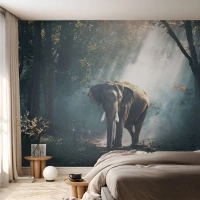 Papier Peint Photo Premium Sand - Un éléphant marchant au soleil dans la forêt - 100x70cm - Une balade tranquille - Décoration murale moderne pour le salon et la chambre ARTTOR