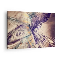 Impression sur toile - Image sur toile - Abstraction dynamique dans les tons beige et violet - 50x70cm - En grande hâte - Décoration murale moderne pour le salon et la chambre ARTTOR