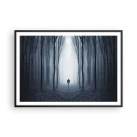 Affiche dans un cadre noir - Poster - Une silhouette marchant parmi les arbres dans une forêt brumeuse - 100x70cm - Tout est simple et clair - Décoration murale moderne pour le salon et la chambre ARTTOR