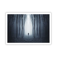 Affiche - Poster - Une silhouette marchant parmi les arbres dans une forêt brumeuse - 100x70cm - Tout est simple et clair - Décoration murale moderne pour le salon et la chambre ARTTOR