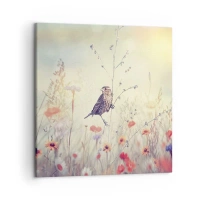 Impression sur toile - Image sur toile - Portrait d'oiseau sur pré en fond - 60x60 cm
