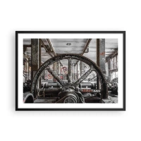 Affiche dans un cadre noir - Poster - Un vieux mécanisme dans un intérieur industriel abandonné - 70x50cm - Vie secrète d'une usine - Décoration murale moderne pour le salon et la chambre ARTTOR