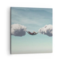 Impression sur toile - Image sur toile - Une personne se détendant dans un hamac suspendu dans les nuages - 80x120cm - Instant de bonheur - Décoration murale moderne pour le salon et la chambre ARTTOR
