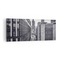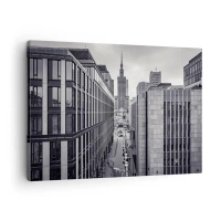 Impression sur verre - Image sur verre - Vue de la ville en noir et blanc avec des gratte-ciel et une rue - 120x80cm - Vallée de Varsovie - Décoration murale moderne pour le salon et la chambre ARTTOR