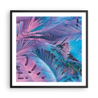Affiche dans un cadre noir - Poster - Les tropiques en rose et bleu - 50x50 cm