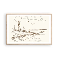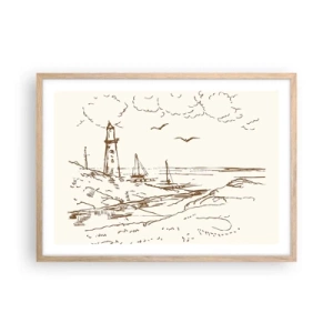Affiche dans un chêne clair - Poster - Esquisse de souvenirs d'été - 70x50 cm