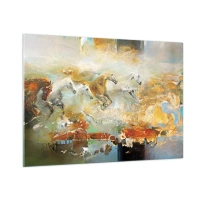 Impression sur verre - Image sur verre - Chevaux abstraits en mouvement dynamique - 100x70cm - Au galop vers la lumière - Décoration murale moderne pour le salon et la chambre ARTTOR