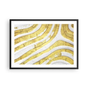 Affiche dans un cadre noir - Poster - Lignes abstraites dorées et blanches dans une texture 3D - 70x50cm - Composition en blanc et or - Décoration murale moderne pour le salon et la chambre ARTTOR