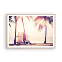 Impression sur toile - Image sur toile - Palmiers et planches de surf sur la plage au soleil - 70x100cm - Ca va être une journée magnifique - Décoration murale moderne pour le salon et la chambre ARTTOR