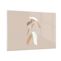 Impression sur verre - Image sur verre - Figure stylisée d'une femme au chapeau blanc - 100x70cm - Lea mode est un jeu - Décoration murale moderne pour le salon et la chambre ARTTOR