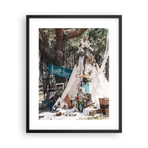 Impression sur verre - Image sur verre - Décoration extérieure bohème avec un tipi et des fleurs dans la forêt - 120x80cm - Make love… - Décoration murale moderne pour le salon et la chambre ARTTOR