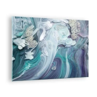 Impression sur verre - Image sur verre - Une composition abstraite dans des tons de bleu, violet et blanc. - 70x50cm - Courants bleus - Décoration murale moderne pour le salon et la chambre ARTTOR