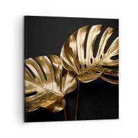 Papier Peint Photo Premium Canvas - Les trésors de la nature - Abstraction, Feuilles d'or, Feuille de monstre - 200x140 cm