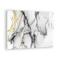 Impression sur verre - Image sur verre - Composition abstraite en noir et blanc avec une touche d'or - 70x50cm - Composition à motif or - Décoration murale moderne pour le salon et la chambre ARTTOR