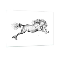 Impression sur verre - Image sur verre - Dessin en noir et blanc d'un cheval au galop - 120x80cm - Immortalisé au galop - Décoration murale moderne pour le salon et la chambre ARTTOR