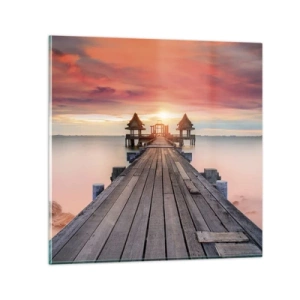 Impression sur verre - Image sur verre - Jetée en bois menant aux belvédères au coucher du soleil - 70x100cm - L'Ouest à l'Est - Décoration murale moderne pour le salon et la chambre ARTTOR