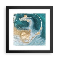 Affiche dans un cadre noir - Poster - Tourbillon d'or et de turquoise - 30x30 cm