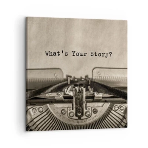Impression sur toile - Image sur toile - Une machine à écrire avec les mots « Quelle est votre histoire ? » - 70x100cm - Réponds-moi - Décoration murale moderne pour le salon et la chambre ARTTOR
