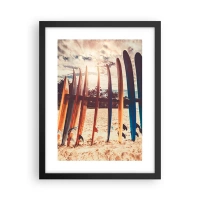 Impression sur toile - Image sur toile - Planches de surf sur la plage au coucher du soleil - 100x70cm - Bonne nuit, à demain - Décoration murale moderne pour le salon et la chambre ARTTOR