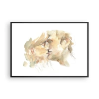 Affiche dans un cadre noir - Poster - Portrait romantique à l'aquarelle d'un couple s'embrassant - 100x70cm - A moitié trouvé ? - Décoration murale moderne pour le salon et la chambre ARTTOR