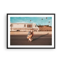 Affiche dans un cadre noir - Poster - Une fille sur des patins à roulettes prenant une photo par une journée ensoleillée. - 70x50cm - Souriez s'il-vous-plait! - Décoration murale moderne pour le salon et la chambre ARTTOR