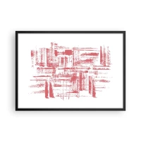 Affiche dans un cadre noir - Poster - Textures roses abstraites sur fond blanc - 70x50cm - La ville rouge - Décoration murale moderne pour le salon et la chambre ARTTOR