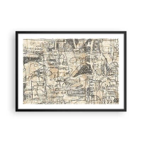 Affiche dans un cadre noir - Poster - Motifs abstraits et lignes sur fond beige - 70x50cm - Il attend d'être décodé - Décoration murale moderne pour le salon et la chambre ARTTOR