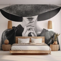 Papier Peint Photo Standard Eco - Femme élégante en noir avec un grand chapeau dans une photo glamour - 100x70cm - Beauté cachée - Décoration murale moderne pour le salon et la chambre ARTTOR