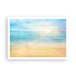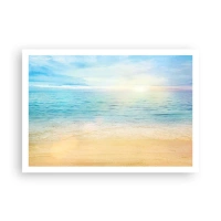 Affiche - Poster - Une plage avec une mer turquoise et un ciel clair - 100x70cm - Le grand bleu - Décoration murale moderne pour le salon et la chambre ARTTOR