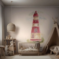 Papier Peint Photo Standard Eco - Phare aquarelle rouge et blanc - 100x70cm - Il y a toujours beau temps autour - Décoration murale moderne pour le salon et la chambre ARTTOR