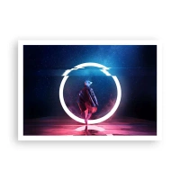 Affiche - Poster - Un personnage dans un environnement futuriste avec un cercle de néon - 100x70cm - Entre deux mondes - Décoration murale moderne pour le salon et la chambre ARTTOR