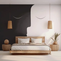 Papier Peint Photo Standard Eco - Les visages minimalistes en noir et blanc créent du contraste - 100x70cm - Unité des contraires - Décoration murale moderne pour le salon et la chambre ARTTOR