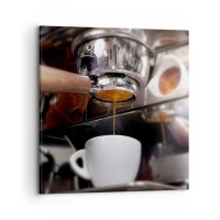 Impression sur toile - Image sur toile - Gros plan d'une machine à café préparant un expresso frais - 100x70cm - Bon moment de la journée - Décoration murale moderne pour le salon et la chambre ARTTOR