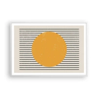 Affiche dans un cadre noir - Poster - Un cercle jaune sur un fond de lignes horizontales noires et blanches - 100x70cm - Le pouvoir de la simplicité - Décoration murale moderne pour le salon et la chambre ARTTOR