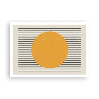 Affiche - Poster - Un cercle jaune sur un fond de lignes horizontales noires et blanches - 100x70cm - Le pouvoir de la simplicité - Décoration murale moderne pour le salon et la chambre ARTTOR