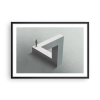 Affiche dans un cadre noir - Poster - Une figure debout sur un triangle de Penrose dans des tons de gris. - 70x50cm - Mais c'est possible - Décoration murale moderne pour le salon et la chambre ARTTOR