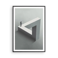 Affiche dans un cadre noir - Poster - Une figure debout sur un triangle de Penrose dans des tons de gris. - 100x70cm - Mais c'est possible - Décoration murale moderne pour le salon et la chambre ARTTOR