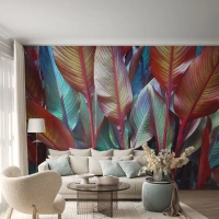 Papier Peint Autocollant Deluxe Sticker - Un fourré coloré - Feuilles, Botanique, Bohème - 500x350 cm