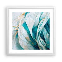 Affiche dans un cadre blanc - Poster - Abstraction bleue avec un motif doré - 40x40 cm