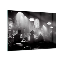 Impression sur verre - Image sur verre - Scène de jazz en noir et blanc dans un intérieur de club - 70x50cm - Dans une ambiance jazz - Décoration murale moderne pour le salon et la chambre ARTTOR