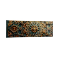 Impression sur verre - Image sur verre - Un mandala doré sur fond turquoise avec des détails riches. - 160x50cm - Dans une ambiance arabe - Décoration murale moderne pour le salon et la chambre ARTTOR