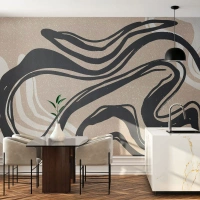 Papier Peint Photo Standard Eco - Lignes expressives noires sur fond beige - 100x70cm - Expression multipliée - Décoration murale moderne pour le salon et la chambre ARTTOR