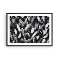 Affiche dans un cadre noir - Poster - Abstraction dynamique avec des coups de pinceau blancs sur fond noir. - 70x50cm - L'abstraction dans l'esprit industriel - Décoration murale moderne pour le salon et la chambre ARTTOR