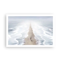 Affiche - Poster - Une silhouette sur une route solitaire au milieu d'un vaste paysage aquatique - 100x70cm - Un brillant avenir - Décoration murale moderne pour le salon et la chambre ARTTOR